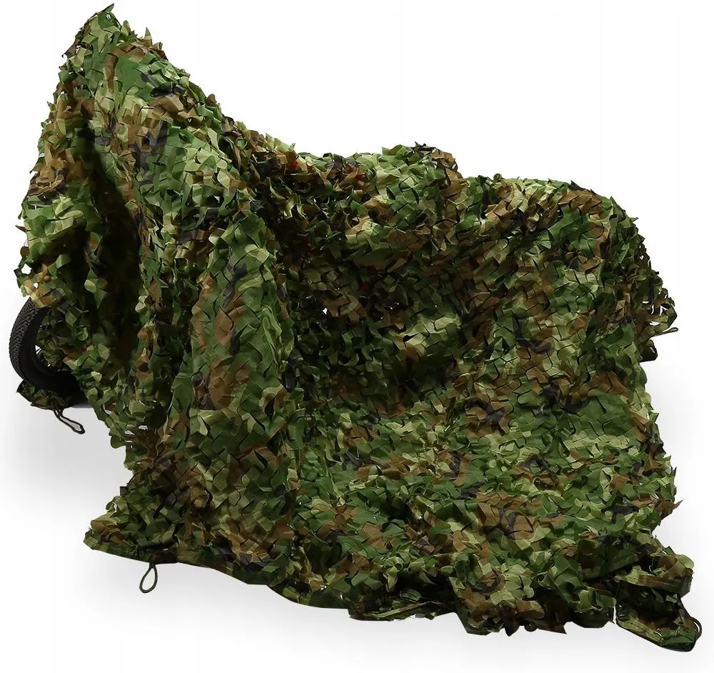 Wojskowa siatka maskująca o wymiarach 6x6m. Idealna, gdy trzeba zakryć agregat, podnośnik lub inne rzeczy w kadrze.